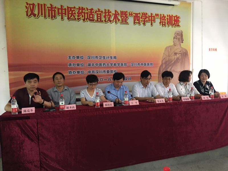 挂牌仪式结束后,汉川市中医适宜技术暨“西学中”培训班在汉川市委党校正式开班。李明院长、刘伟副市长、邹永光副主任、副校长王平先后致辞,汉川市中医院教学基地教师代表程育才、学员代表李超华分别作表态发言。